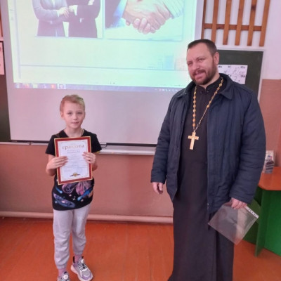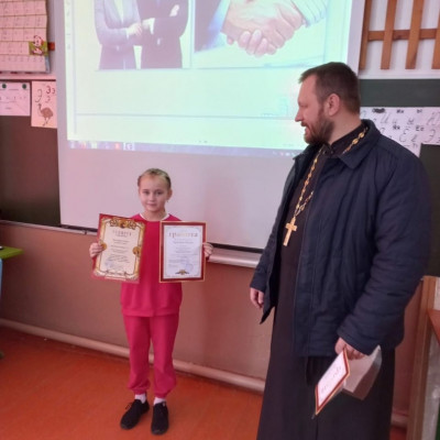 29 января в МКОУ "Поселковая СОШ" настоятель храма Архангела Михаила Отец Игорь Подопригорин вручил учащимся грамоты за конкурс "Красота Божьего мира" и "Рождественские чтения".